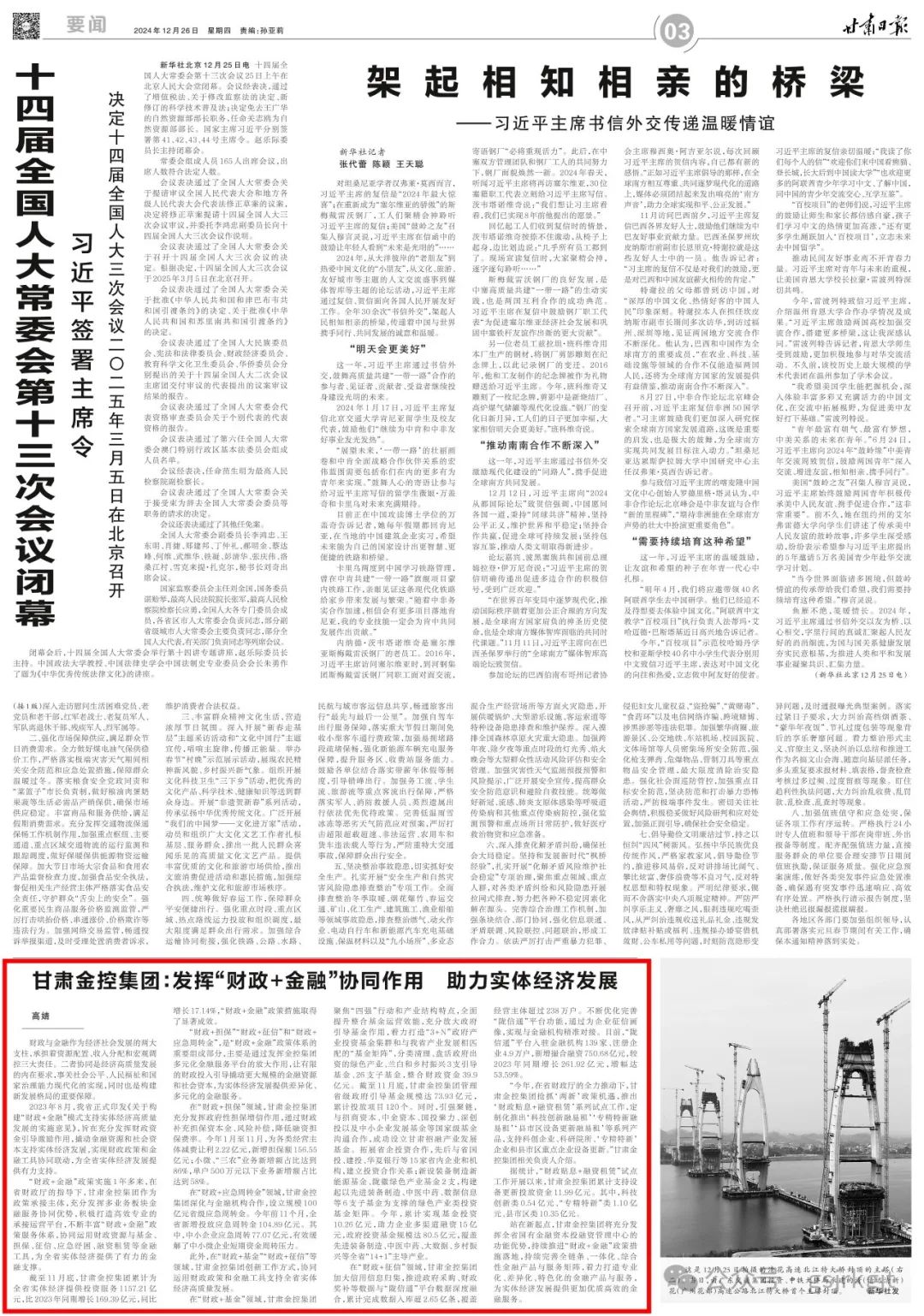 此外,在“財(cái)政+基金”“財(cái)政+征信”等領(lǐng)域,甘肅金控集團(tuán)創(chuàng)新工作方式,協(xié)同運(yùn)用財(cái)政政策和金融工具支持全省實(shí)體經(jīng)濟(jì)高質(zhì)量發(fā)展。