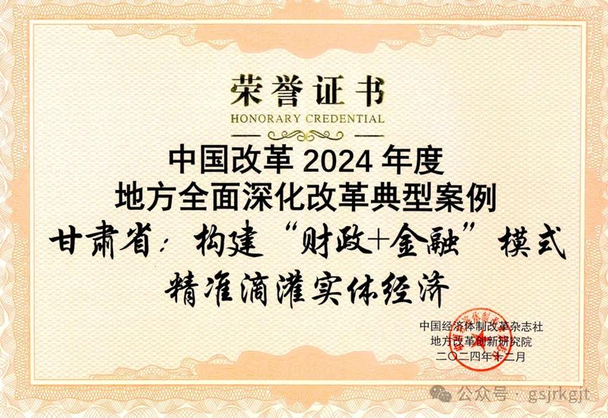 新甘肅客戶端蘭州訊(新甘肅·甘肅日報記者曹立萍)日前,甘肅省構(gòu)建“財政+金融”模式精準(zhǔn)滴灌實體經(jīng)濟(jì)案例入選“中國改革2024年度案例”。這是此次我省入選15個改革案例中,唯一一個涉及財政金融領(lǐng)域的改革案例。